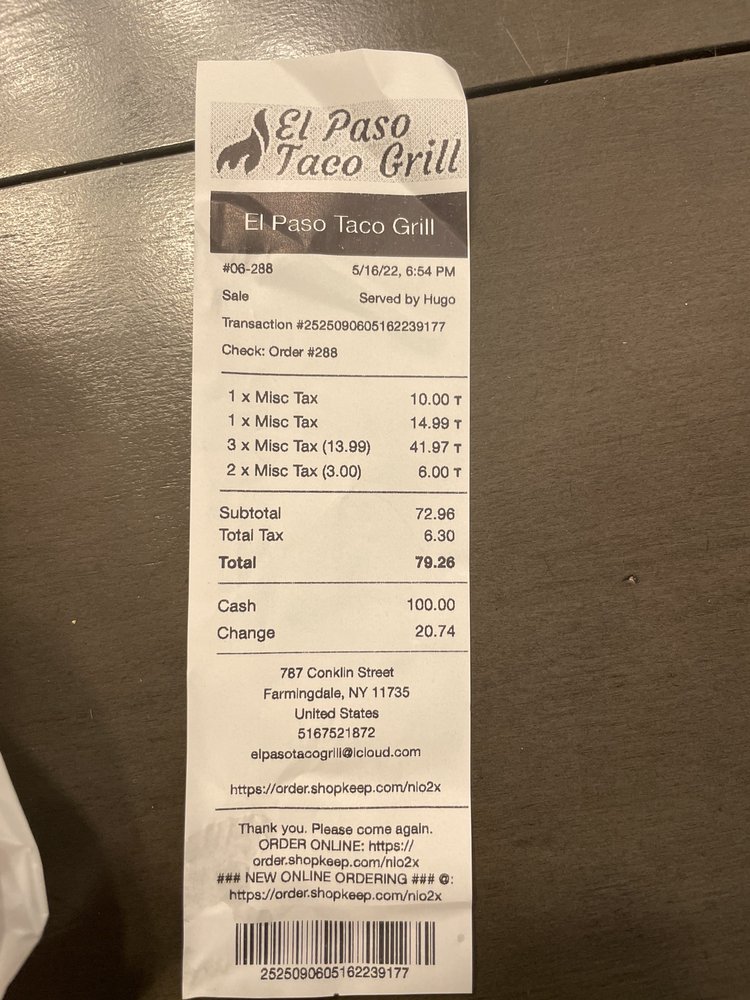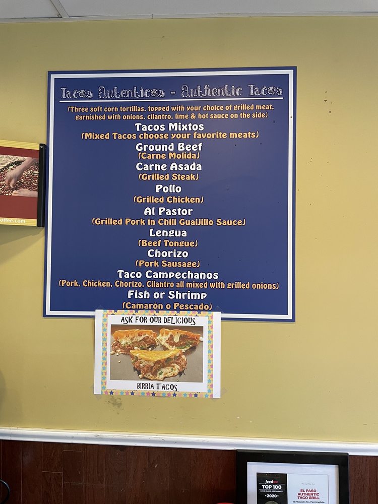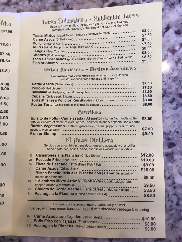 El Paso Taco Grill, located in Farmingdale, NY, offers a blend of Honduran, Salvadoran, and Mexican cuisine. With options for delivery, takeout, and catering, this casual spot is perfect for groups, families, and a quick lunch or dinner. Customers rave about the authentic flavors and generous portions, particularly highlighting the mixed burrito and birria tacos. The cozy ambiance, friendly staff, and diverse menu items like pupusas also garner praise. From the flavorful shrimp and chicken to the traditional horchata and tres leches cake, El Paso Taco Grill provides a satisfying dining experience with a touch of Hispanic authenticity. Don't miss out on this hidden gem for a taste of South and Central American cuisine right in New York.